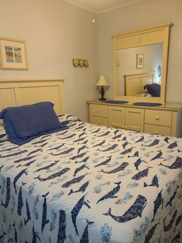 One bedroom with queen bed