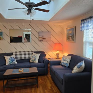 Living room with queen size sleep sofa & TV
