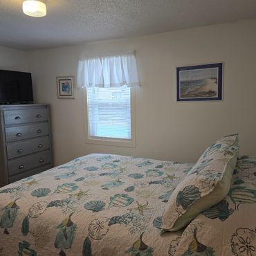 One bedroom with queen size bed & TV One bedroom with queen size bed